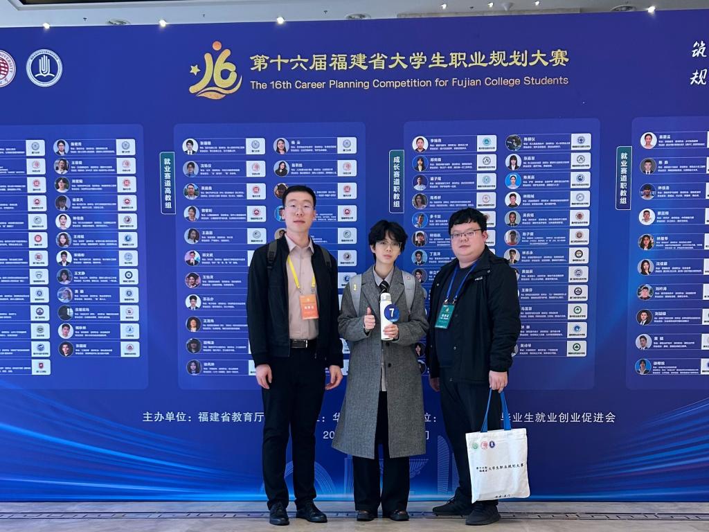 近日,福建省第十六届大学生职业规划大赛决赛在华侨大学厦门校区举行,我院投资学2021级学生谢逸扬在高教组成长赛道决赛中表现优异,夺得金奖,指导老师邹景宇获优秀指导老师。