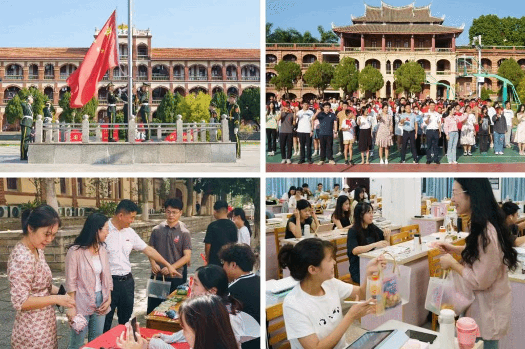 升旗仪式后,学院社团以歌舞快闪、知识竞答、趣味游戏等形式推出一系列精彩活动,为喜迎国庆增添一抹抹靓丽的色彩,同学们沉浸在共度佳节的愉快氛围中。学院领导带着礼品来到考研自习室慰问备考同学,以橙汁祝愿同学们心想事“橙”,以饼干寓意“圆”满成功,祝福同学们成功上岸,实现理想目标。
