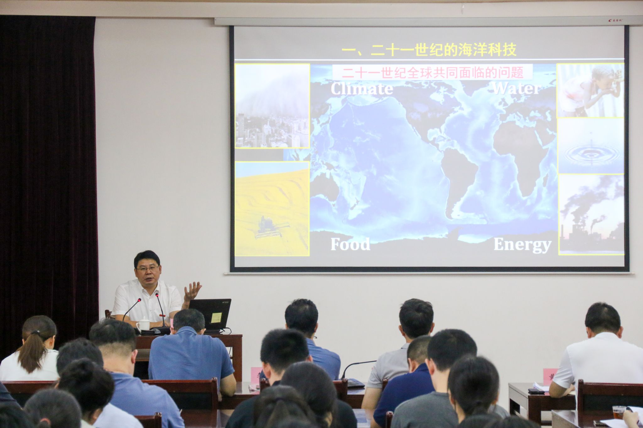 6月17日上午,中国海洋大学海洋地球科学学院院长王厚杰教授受邀参加第159期嘉庚财经讲坛之教授论坛活动,主讲“以海洋科技创新和可持续蓝色经济服务海洋强国战略”的主题讲座。活动由财经学院院长黄阳平主持,校研究生院及财经学院党委中心组(扩大)成员、海洋经济研究团队、行政教辅人员、辅导员、学生代表参加。