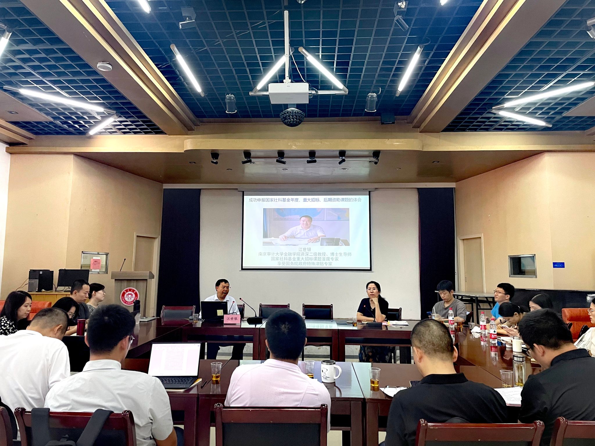 7月9日上午,财经学院在亲民楼2楼多功能厅召开青年教师申报国家社科基金项目经验交流会。会议邀请到南京审计大学金融学院资深二级教授、博士生导师、享受国务院政府特殊津贴专家、江苏省突出贡献专家、国家社科基金重大招标项目首席专家、中国宏观经济管理教育学会常务理事江世银教授莅临指导,学院党委书记吴星旭、分管科研工作副院长、引进人才、青年博士等近30名教师参加。