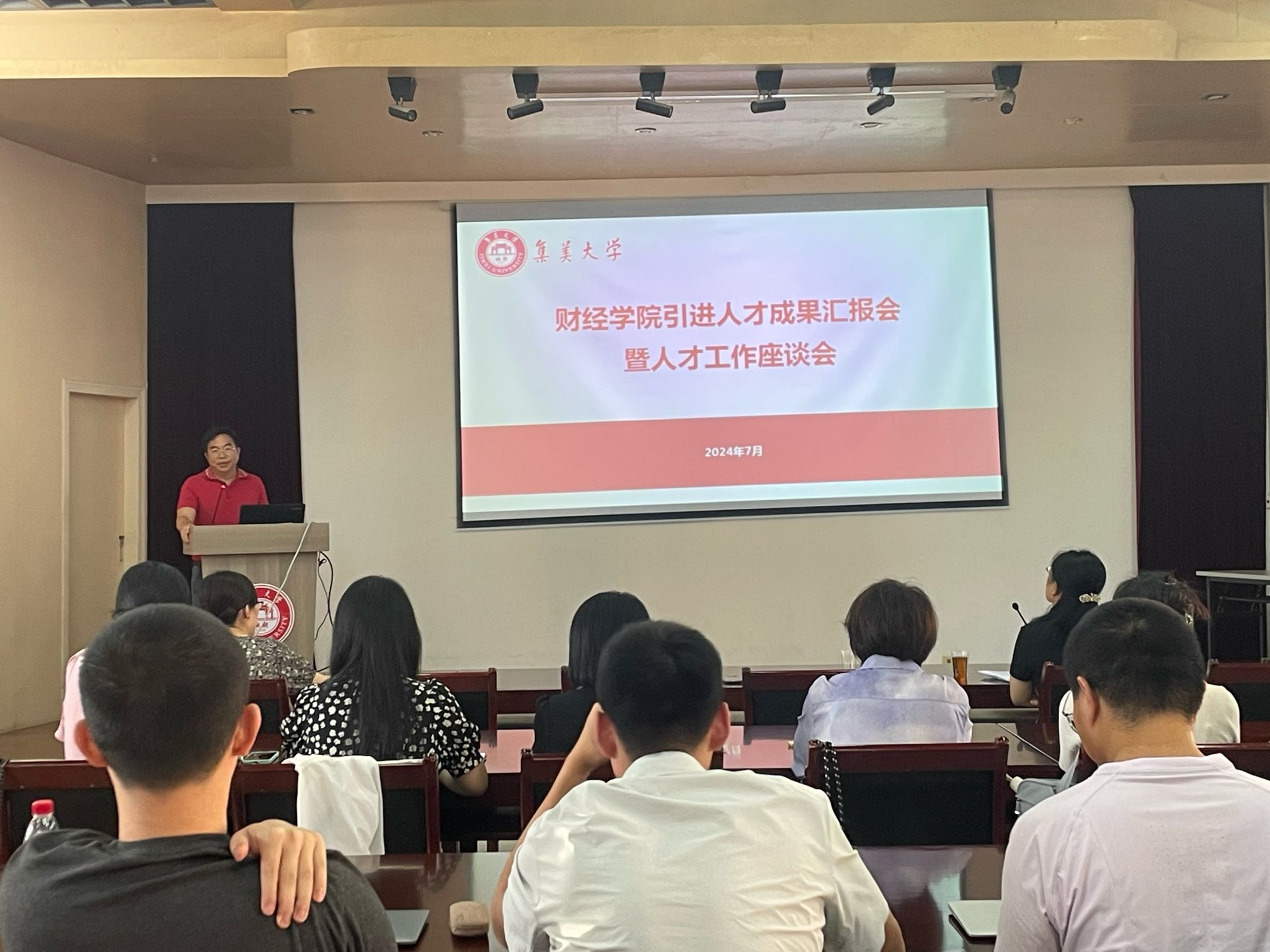 凤凰花开正盛,又一个学期缓缓落幕。在阳光明媚、烈焰如火的七月,财经学院于9日在亲民楼二楼多功能厅举办引进人才成果汇报会暨人才工作座谈会,党委书记吴星旭、副院长王丽萍及引进人才参与,会议由办公室主任陈倍璠主持。