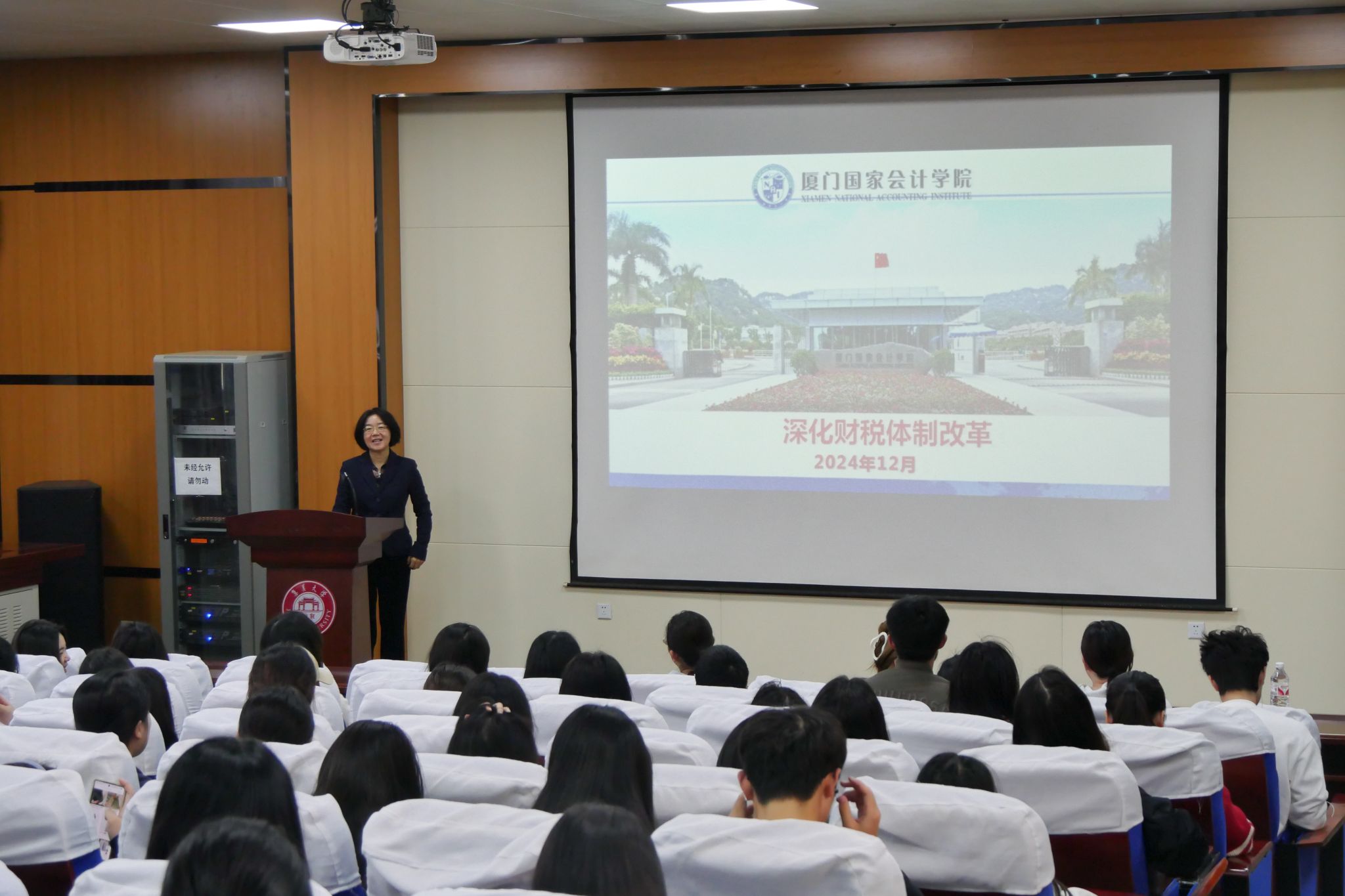12月13日上午,财经学院于文学楼财媒体报告厅举办深化财税体制改革主题讲座,由厦门国家会计学院副院长郑涌主讲。财经学院相关师生代表参加会议。