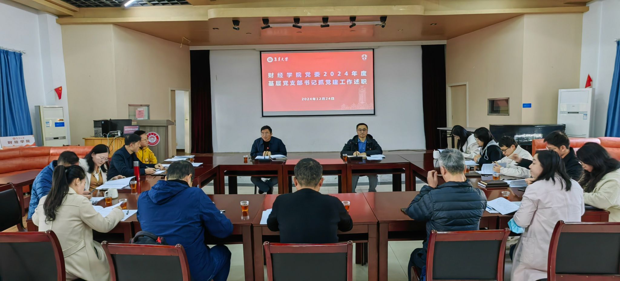 12月24日下午,财经学院党委于亲民楼二楼多功能厅召开2024年度基层党支部书记抓党建工作述职评议会,院党委书记吴星旭、院党委副书记雷会彬出席,院内各基层党支部书记参加。