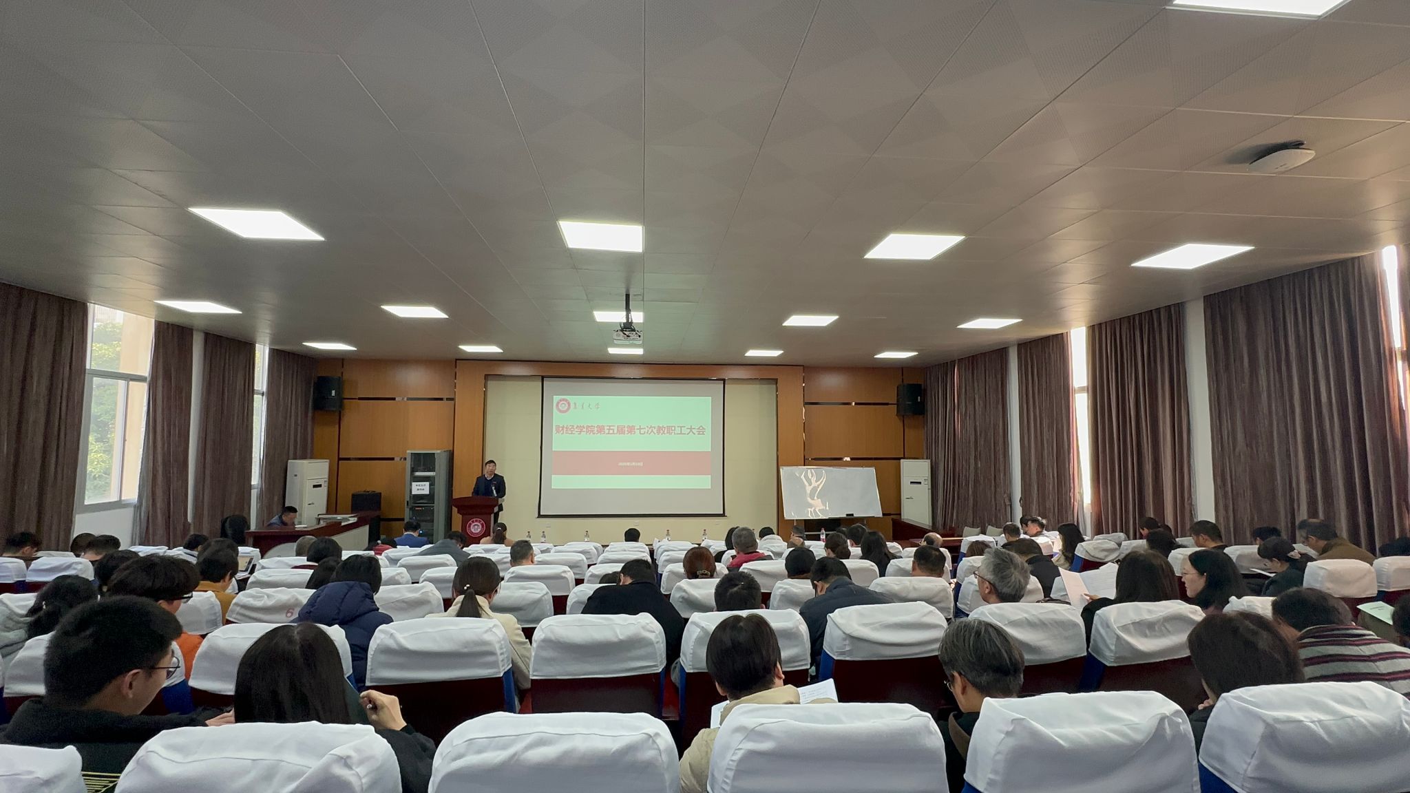 1月10日上午,财经学院召开第五届第七次教职工大会,学院领导班子出席,全体教职工参加会议,会议由学院党委副书记、部门工会主席雷会彬主持。