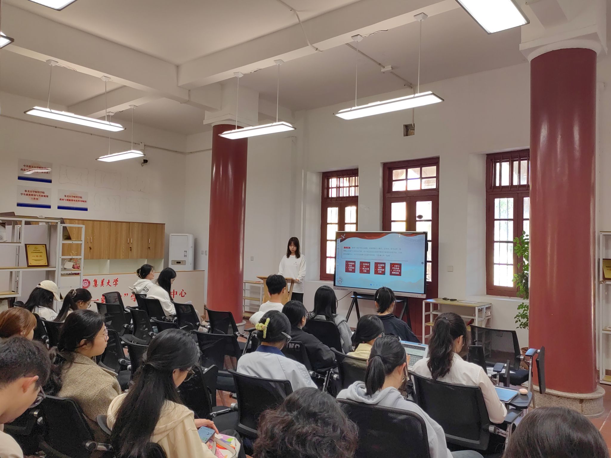拓展阅读环节,学习社成员对《南侨回忆录》和《“一带一路”:机遇与挑战》两本书进行了荐读。通过重温抗日战争时期以陈嘉庚先生为首的华侨同胞在民族危亡之际毅然选择“牺牲小我,成就大我”的牺牲与奉献,分析与探寻身处百年未有之大变局当下的中国青年,如何在应对全球化带来的机遇与挑战中寻找关于“大我”的精神坐标,继续传承和弘扬爱国主义精神,在奋斗中绽放青春光彩。