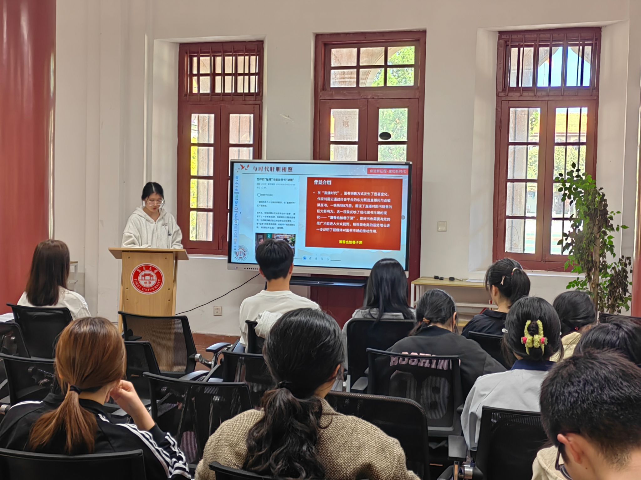 时评探析环节,学习社社员分享了对于《与时代肝胆相照》中“怎样的‘吆喝’才能让好书‘破圈’”的阅读感悟,根据当前图书市场面临“酒香也怕巷子深”的困境,提出出版业只有保持对当下的敏锐、借助专业榜单扩大社会影响力、做好充足的准备才能站上风口,成功“破圈”的思考。