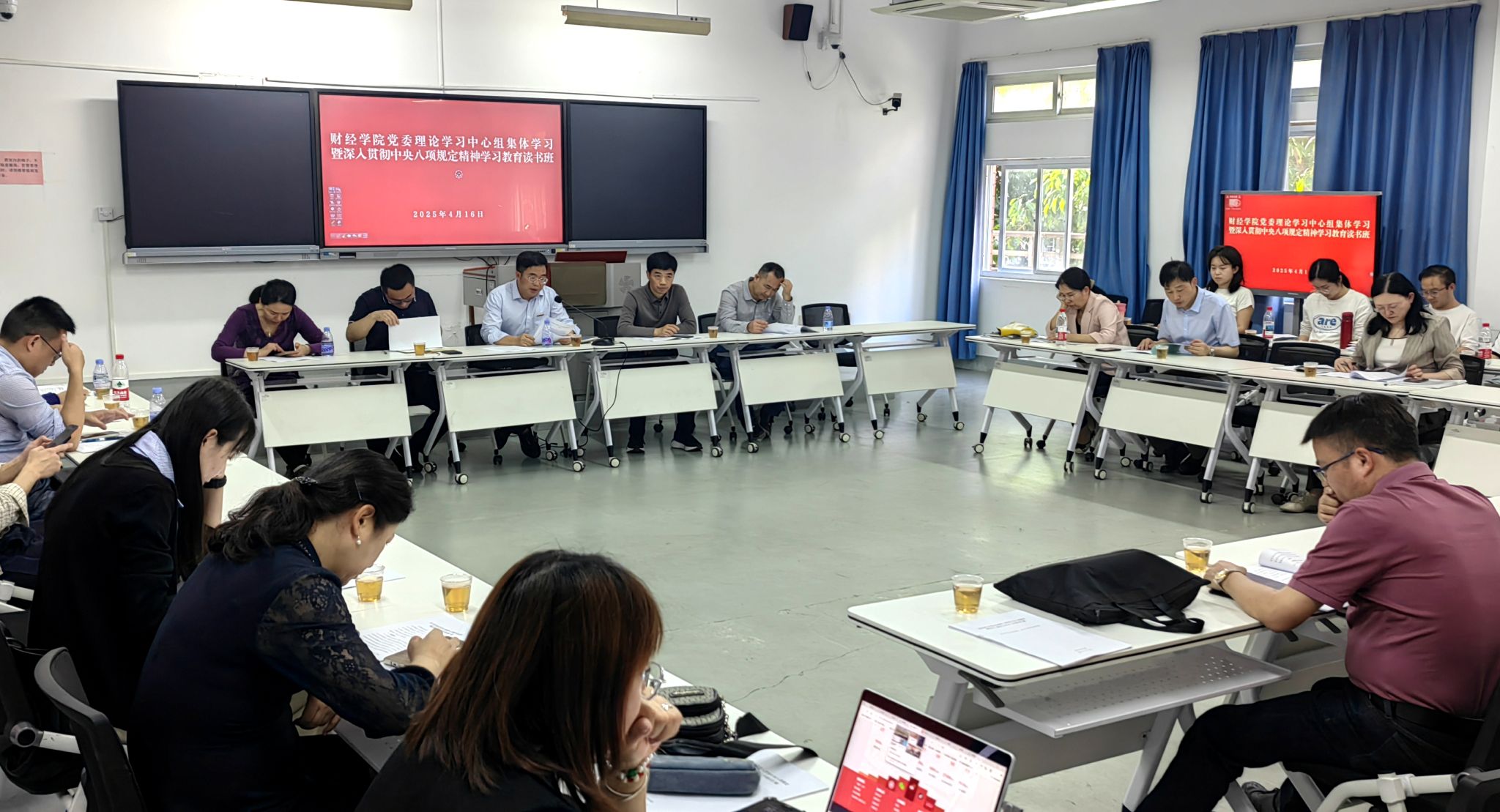 4月16日下午,财经学院在文津楼205组织党委理论学习中心组(扩大)学习会暨深入贯彻中央八项规定精神学习教育读书班。学院党委理论学习中心组全体成员、各系主任、各党支部书记、科级干部参加。会议由学院党委书记吴星旭主持。