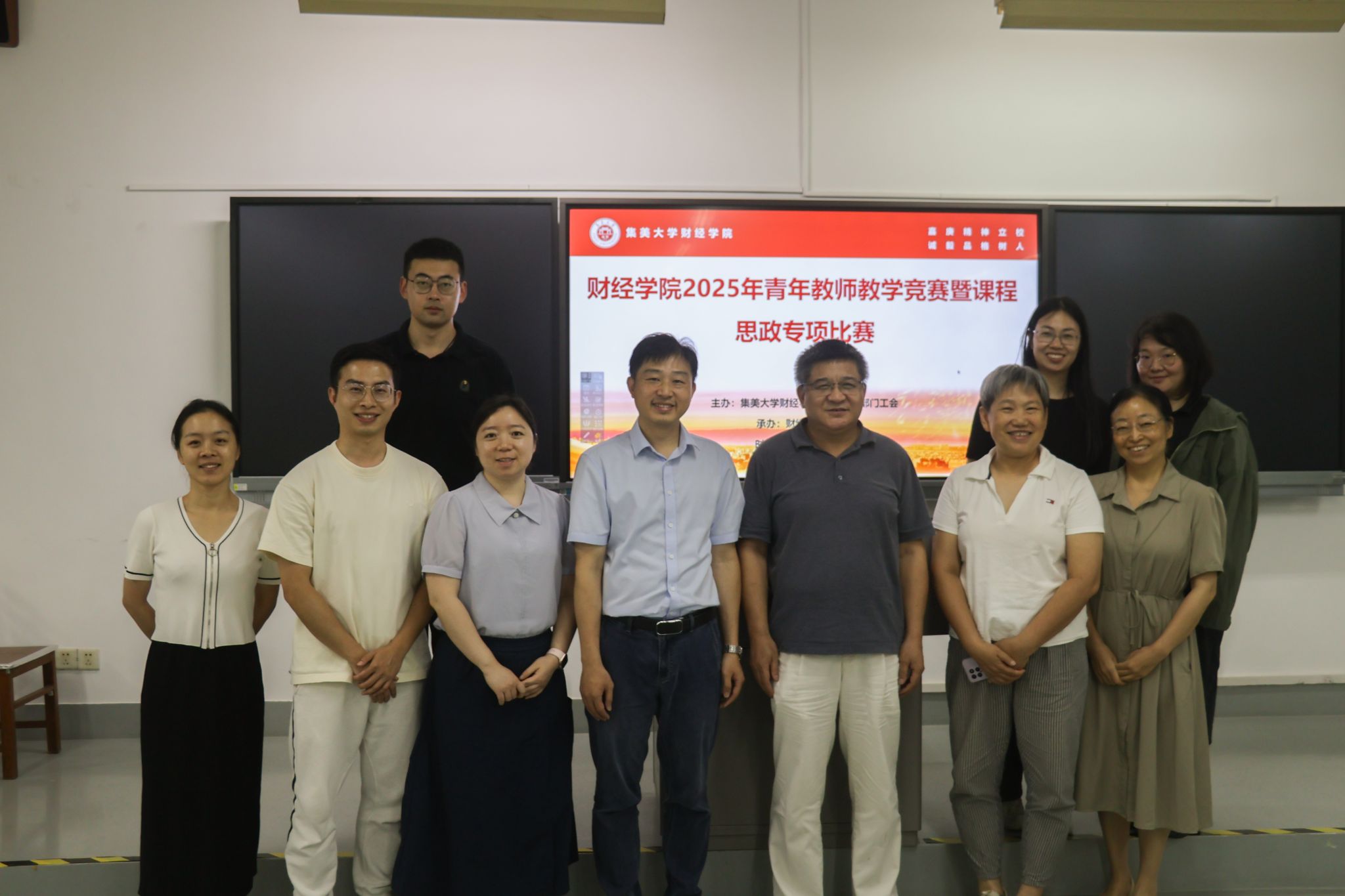为做好本科教育教学审核评估整改工作,进一步深化课堂教学改革,鼓励专任教师更新教育理念,掌握人工智能教学工具,提升教师的思想政治素质以及教学能力和业务水平,6月11日下午,财经学院于文津209智慧教室举办2025年青年教师教学竞赛暨课程思政专项比赛。校督导组吴开微、辛林,财经学院副院长沈少川及院督导组魏洁、施晓丽受邀担任评委,共4位青年教师参赛。