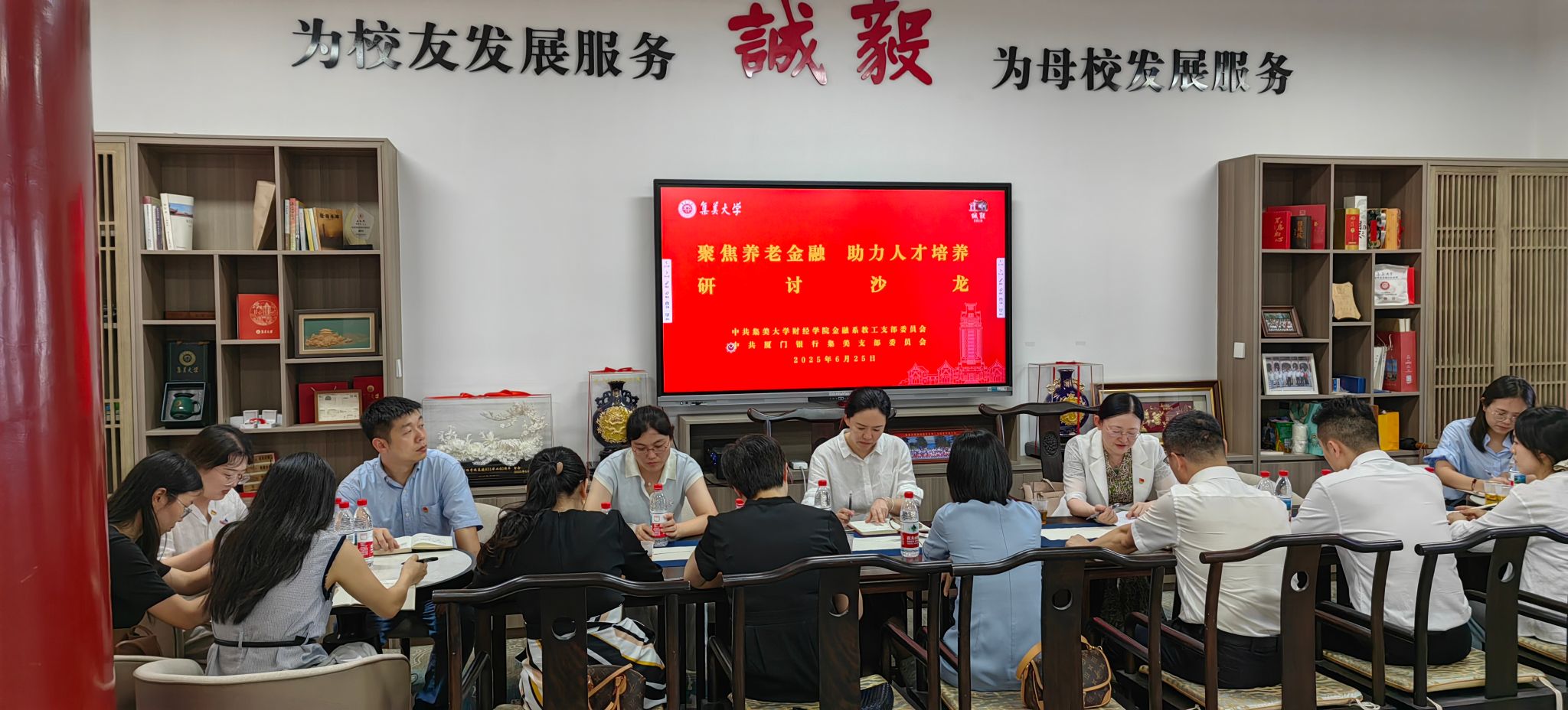 在财经学院敦书楼校友活动中心,双方围绕“聚焦养老金融,助力人才培养”进行了沙龙研讨。研讨中,双方围绕养老金融产业发展与产品开发、金融硕士案例库建设、金融人才实习实践等展开了深入研讨。