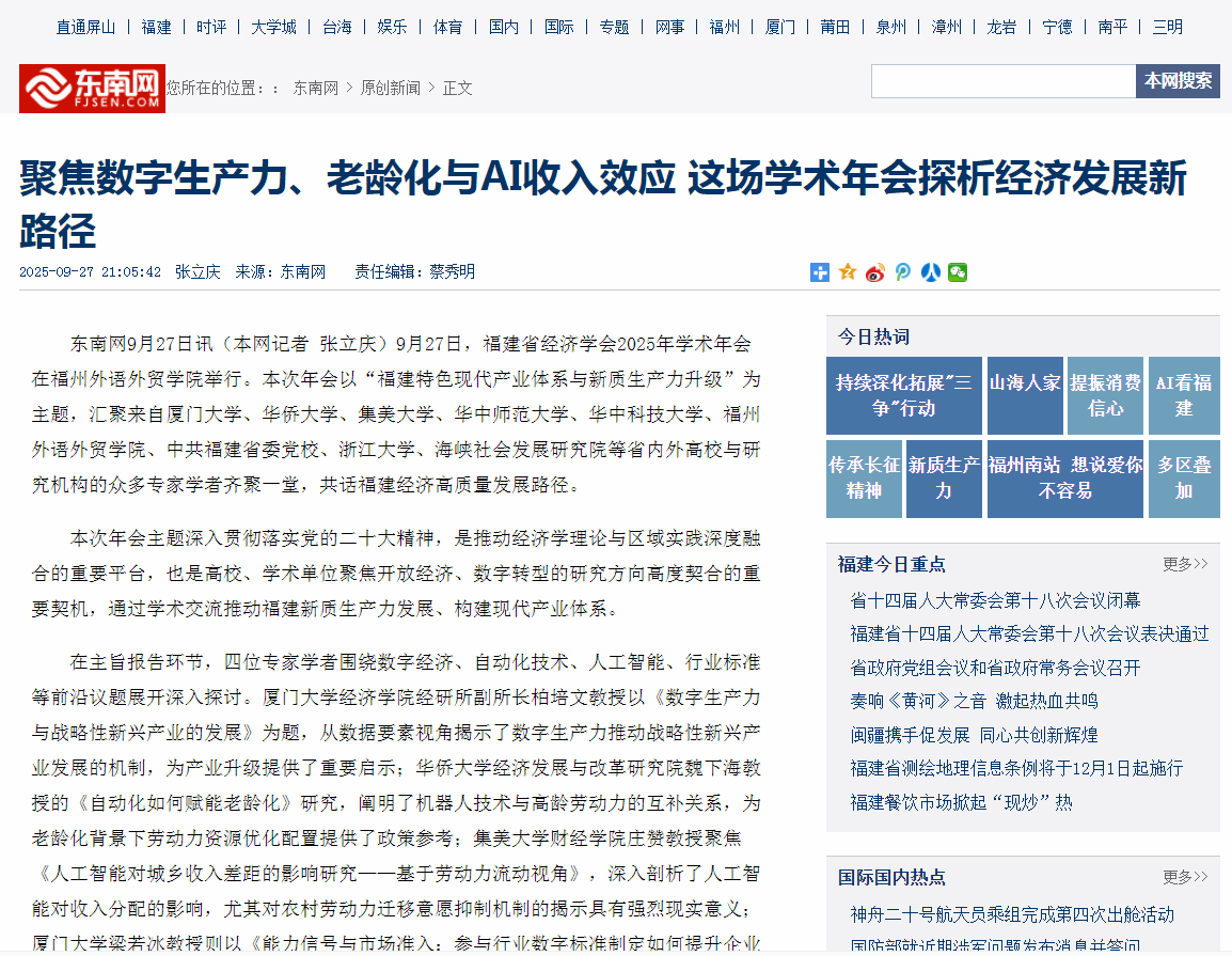本届年会由福建省经济学会主办,会议得到东南网等主流媒体关注报道。