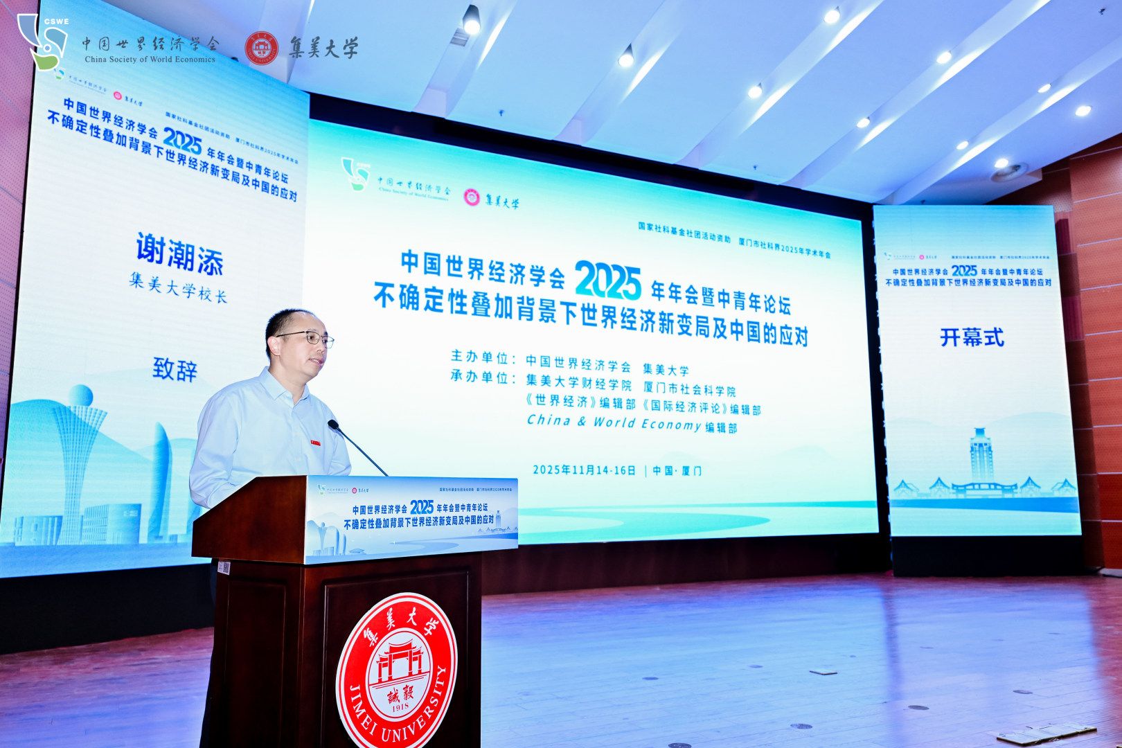 2025年11月14-16日,由中国世界经济学会、集美大学联合主办,集美大学财经学院、厦门市社会科学院等联合承办,并得到国家社科基金社团活动资助的“中国世界经济学会2025年年会暨中青年论坛”在我校举行。