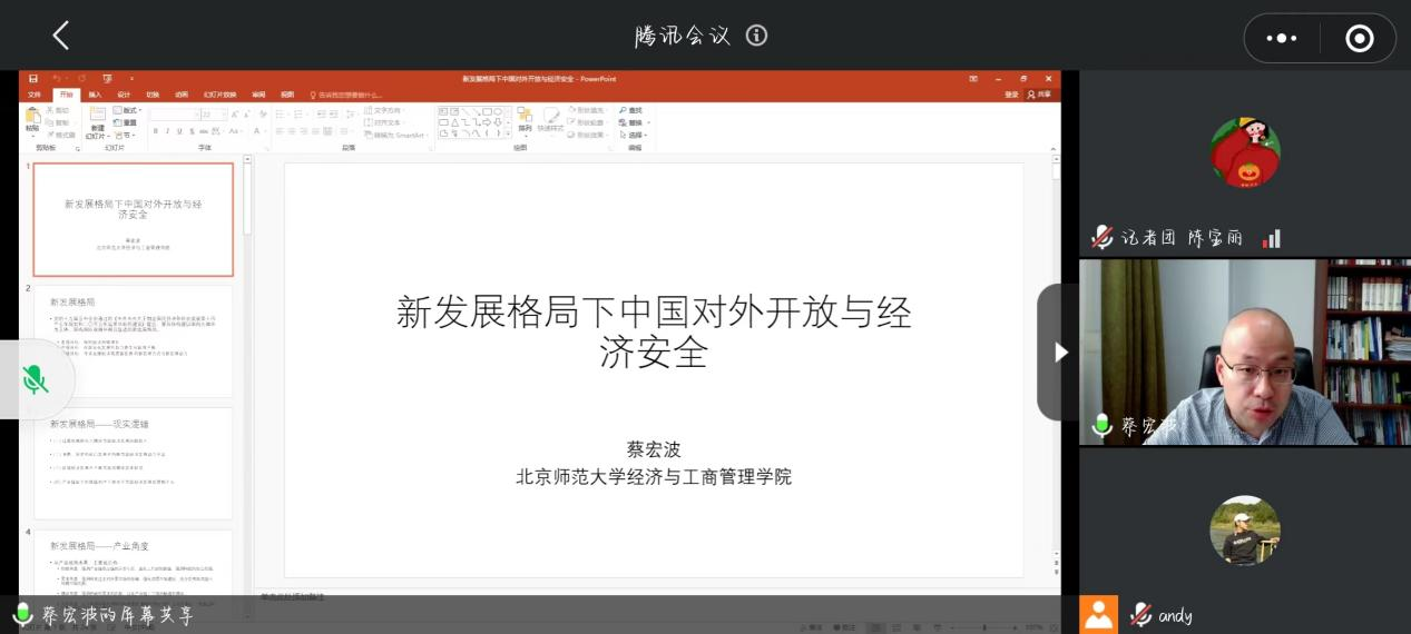 4月11日下午,财经学院于线上举办第117期嘉庚财经讲坛之教授论坛,主题为《新发展格局下中国对外开放与经济安全》。北京师范大学经济与工商管理学院副院长、博士生导师、我校闽江学者讲座教授蔡宏波应邀主讲,学院相关师生参加,论坛由财经学院院长黄阳平教授主持。