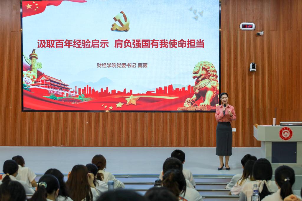 为提高入党积极分子思想觉悟,端正其入党动机,4月13日下午,财经学院党委书记吴薇于文津楼101室为入党积极分子开展以《汲取百年经验启示,肩负强国有我使命担当》为题的专题辅导报告。