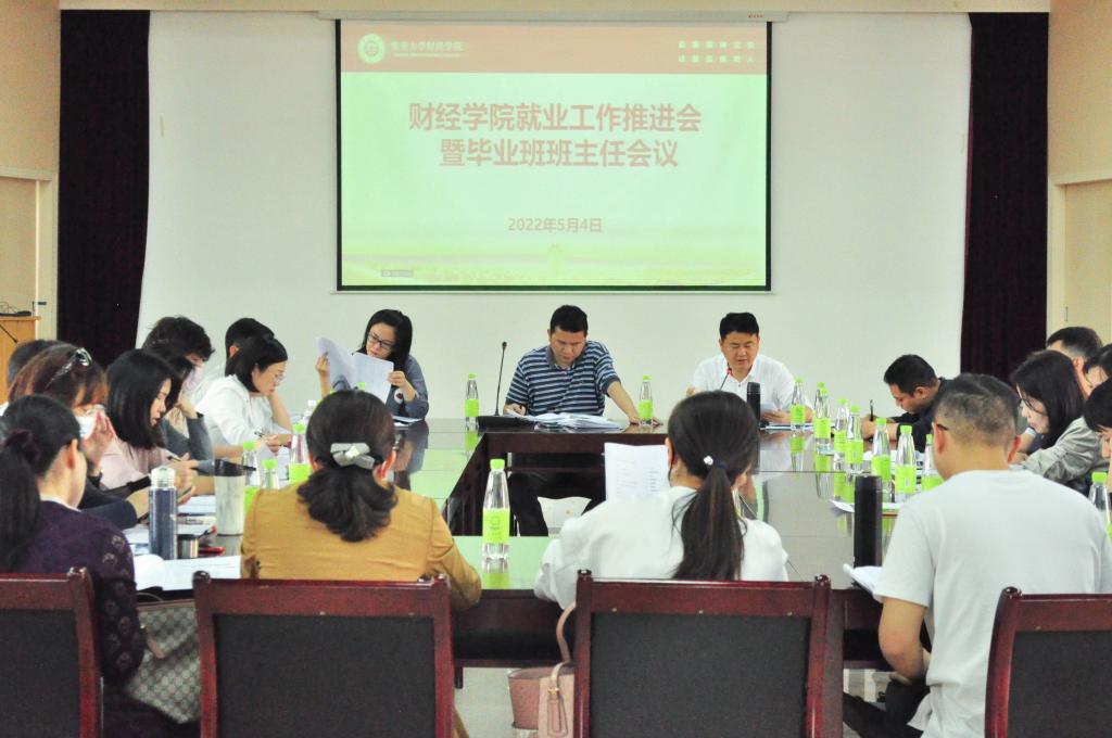 会议上,黄建宇首先就今年财经学院毕业生的就业概况进行汇报,同时对未来如何开展毕业生就业工作提供思路。他针对学生慢就业、缓就业现象显著一系列问题,对教职工提出分析对策,并共享就业信息。结合自身的经验,戴贵芬指出教职工应关心、了解学生需求,引导其树立正确的就业观、价值观,进行精准帮扶。陈蕾建议各位班主任加强对学生重修问题的关心,做到“先毕业再就业”。最后,黄阳平对重修问题提出相关意见,他表示教职工对重修学生既要热情关心,又要严格要求。同时他要求各位班主任重视学生就业问题,帮助学生提高就业率,提升学院就业满意度,真正将学生就业工作落到实处。