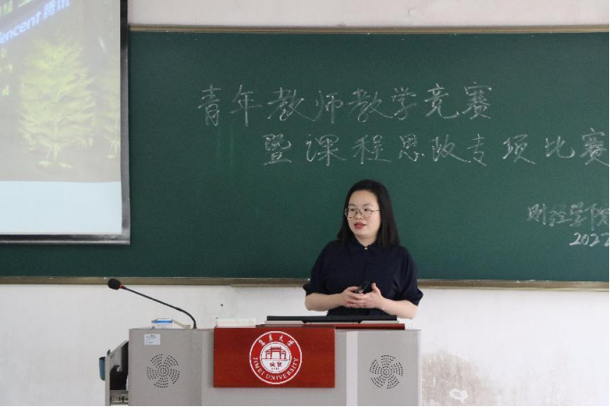 本次比赛分为青年教师教学竞赛与课程思政专项比赛两项。10位青年教师在教学内容、教学组织、教学语言、教学特色以及教学设计等方面进行精心准备。比赛过程中,青年教师们热情高涨、神采飞扬,按抽签顺序轮流展示授课过程。他们贯彻“三尺讲堂、立德树人”的教学理念,紧扣教学目标,熟练运用现代教学手段,通过标准流畅的语言、动静相宜的课件给评委和现场老师们留下深刻印象,赢得阵阵掌声。施晓丽老师代表评委们对10位青年教师的表现进行了点评,她围绕校赛标准在教学设计和授课技巧方面提出建议。最后,财经学院副院长陈蕾对本次活动进行总结。她高度肯定了比赛的组织和运行,感谢各教研室的积极参与,并以自身经历传授教学竞赛的经验。现场老师们获益匪浅。