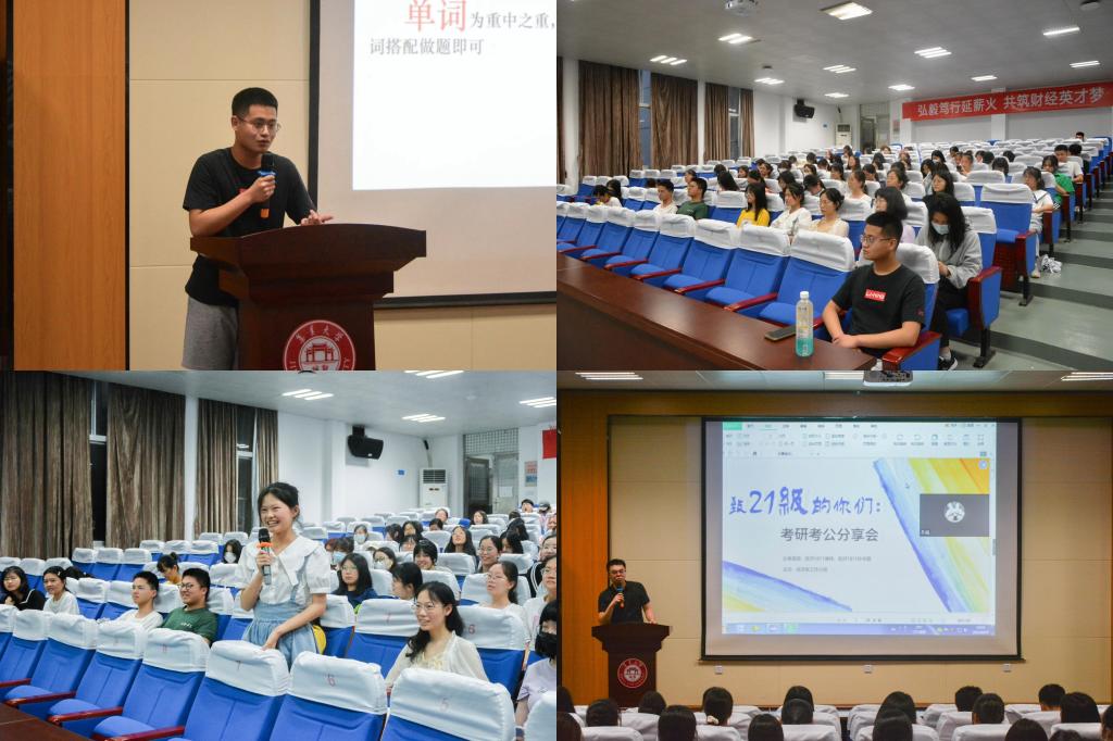619日晚,财经学院于财媒体三楼多功能厅举办经济系考研考公分享会。1811班傅炜和1811班孙令国应邀进行经验分享,21级经济系学生参加。