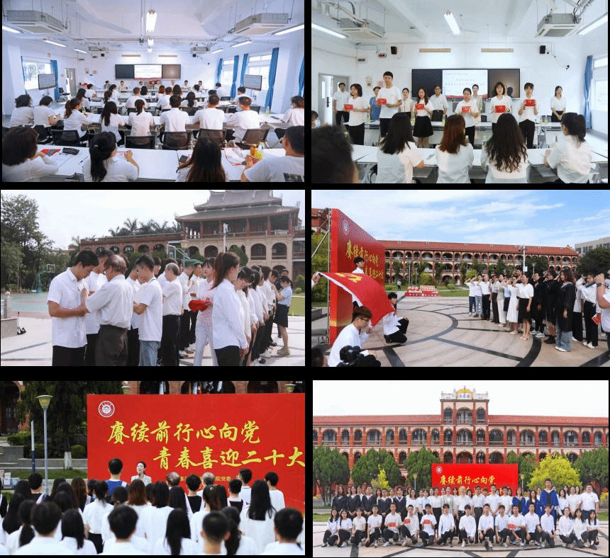 会后,参加政治生日的师生党员、学生支部书记及今年新入党的党员移步尚忠楼,面向鲜红的党旗,老党员们为新党员佩戴党徽,新党员进行入党宣誓,老党员重温入党誓词,他们神情庄重、高举右拳,铮铮誓言,在历经百年洗礼的尚忠楼群回响。宣誓仪式结束后,吴薇对新党员提出建议与期盼,勉励同学们要赓续嘉庚精神,坚定理想信念,锤炼自身品格,奋进新征程、建功新时代,全面推进“工海”特色更加鲜明的一流大学建设,以优异成绩迎接党的二十大胜利召开。