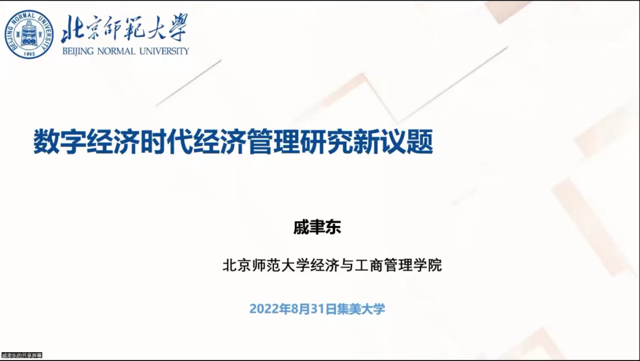 8月31日下午,财经学院以线上形式举办第123期嘉庚财经讲坛之教授论坛,论坛主题为《数字经济时代经济管理研究新议题》。北京师范大学经济与工商管理学院院长、中国工业经济学会副会长戚聿东教授应邀主讲,财经学院院长黄阳平教授主持,学院相关师生参加。