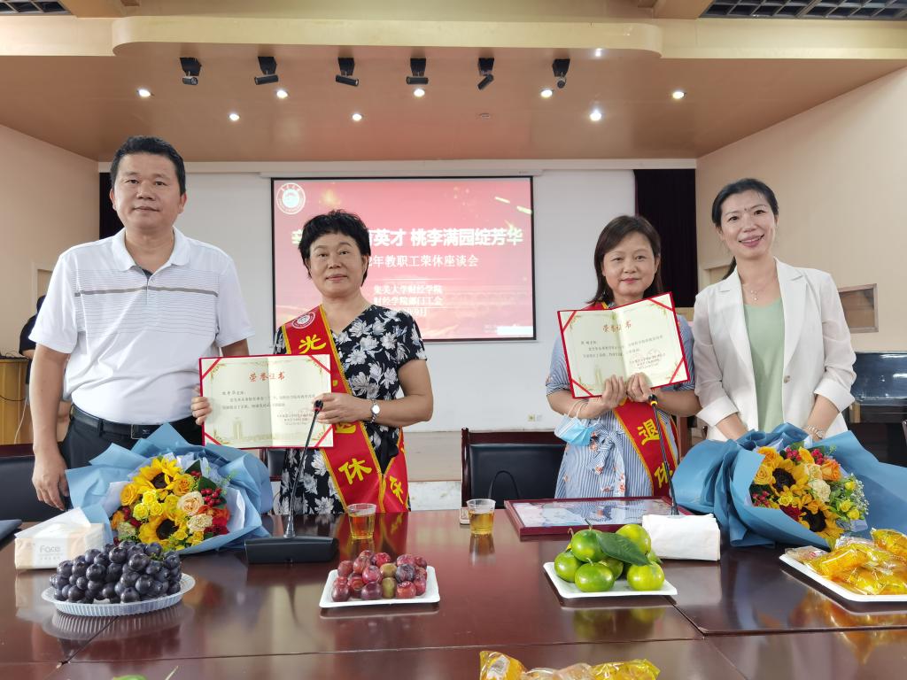 9月14日下午,财经学院于办公楼二楼多功能厅为金融系冼青华、陈翊两位老师举办荣休座谈会。座谈会由财经学院副院长陈蕾主持,全体院领导以及教师代表参加。