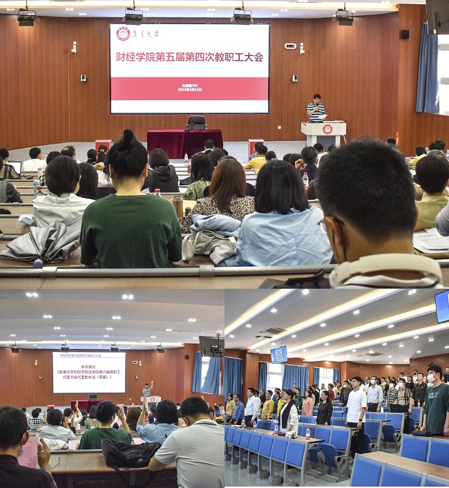 3月22日下午,财经学院召开第五届第四次教职工大会。会议由院党委副书记、部门工会主席黄建宇主持。