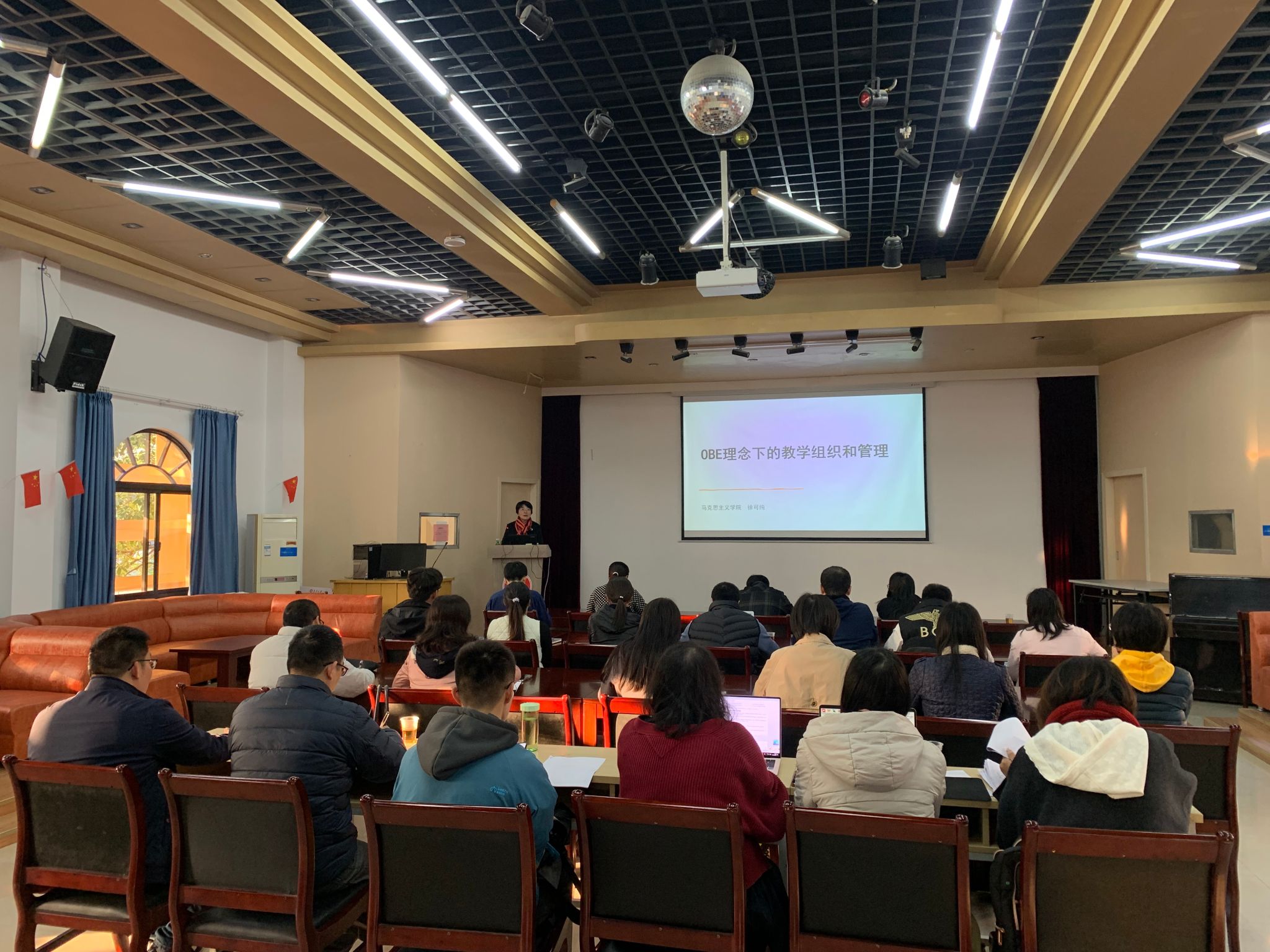 近日,为贯彻落实学校有关开展教育教学思想大讨论的文件精神,进一步深化本科教育教学改革,形成做好本科教育教学审核评估的思想共识与行动自觉,学院于亲民楼二楼多功能厅举办OBE理念下的教学组织和管理培训。学校教学督导组组长徐可纯教授受邀主讲,学院副院长陈蕾教授主持,各系主任、近三年青年教师以及教学办全体人员参加了培训。