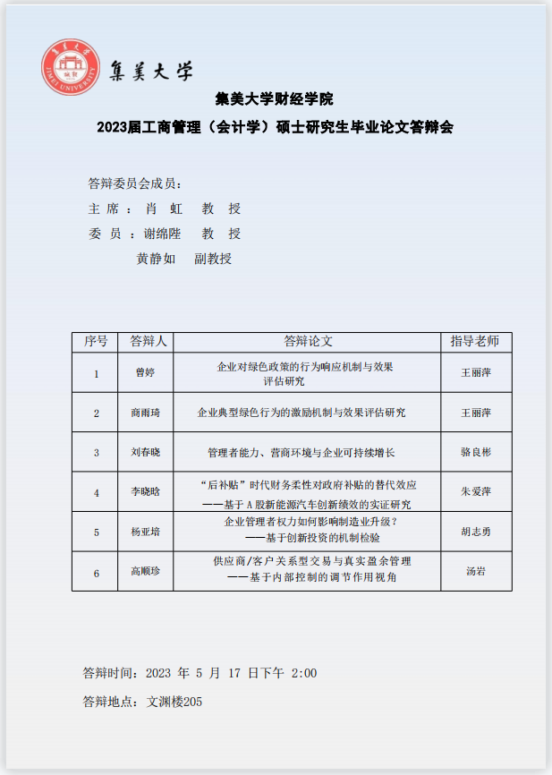 上一篇:集美大学财经学院2023届工商管理(会计学)硕士研究生毕业论文答辩会2