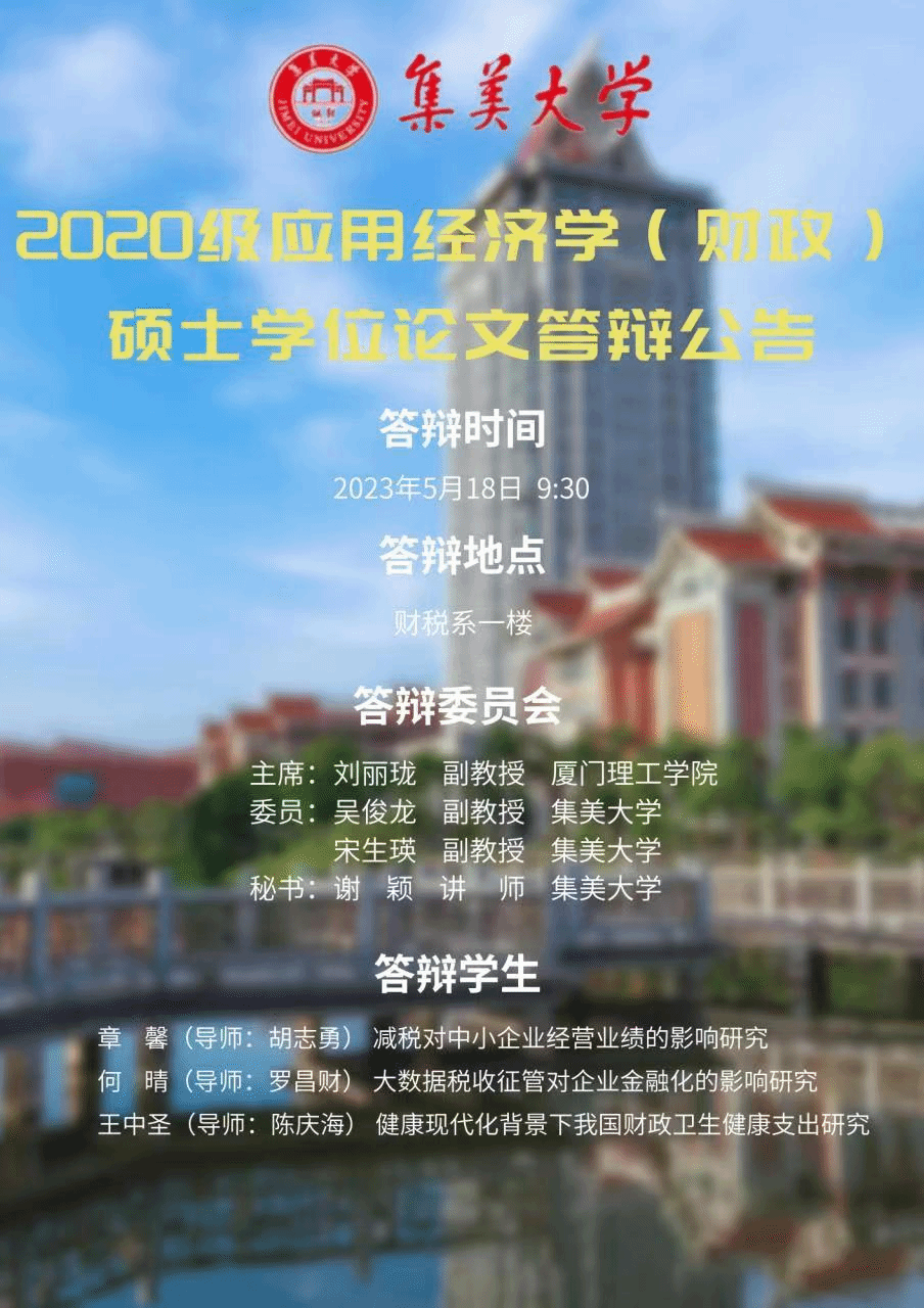 下一篇:集美大学财经学院2023届会计专业硕士研究生毕业论文答辩会3