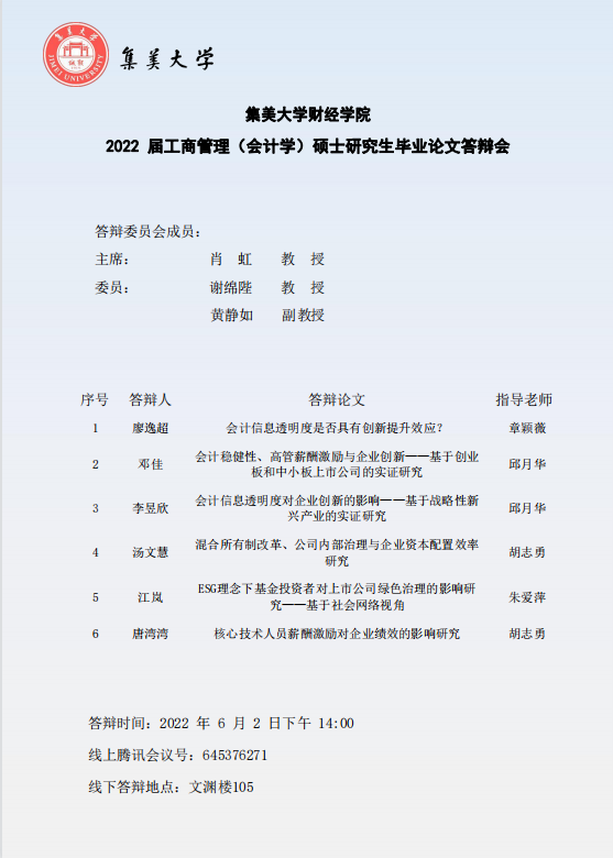 上一篇:财经学院工商管理(会计学)硕士学位论文答辩公告(2)