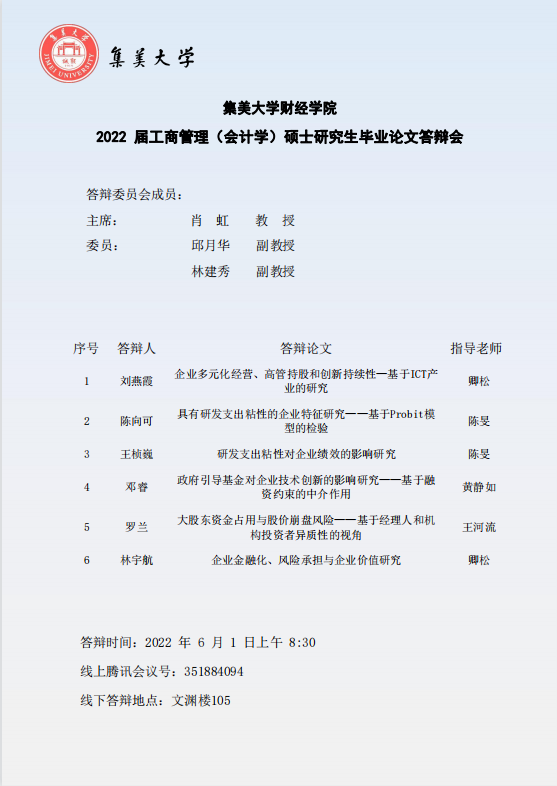 下一篇:财经学院工商管理(会计学)硕士学位论文答辩公告(1)