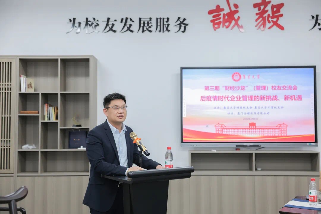 48日下午,集美大学财经校友会和集美大学工商管理学院校友会于西楼二楼校友接待室联合举办以后疫情时代企业管理的新挑战、新机遇为主题的第三期财经沙龙(管理)校友交流会。