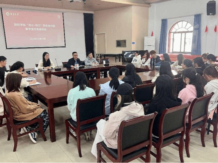 近日,财经学院于亲民楼多功能厅举办“同心·同行”师生面对面暨学生代表座谈会,院党委副书记雷会彬、院团委书记方洋、辅导员张怡雪以及学生代表参加。