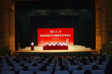9月17日晚,财经学院于古龙大礼堂举办2025级新生开学典礼,学院领导,各系主任、党支部书记、副主任,各科室负责人,新生班主任,全体辅导员及2025级全体新生参加。典礼由院党委副书记雷会彬主持。