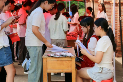 学院各社团于敦书楼前举办庆祝中华人民共和国成立76周年游园活动。“礼赞中华”、“重走长征路”、“补韵颂中华”等系列活动让同学们在游玩中重温红色历史,于趣味里激发爱国情怀,激励广大学子将青春融入民族复兴的伟大征程。