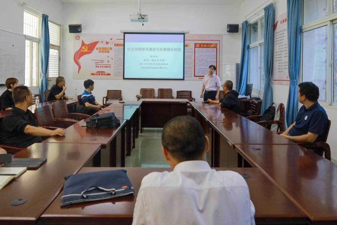 蔡伟贤首先介绍了经济发展的目标、影响人们消费决策的主要因素以及我国经济发展模式需要转型的原因。随后,他结合客观严谨的图表数据、文献案例,围绕养老保障体系、医疗保障体系、教育保障体系、住房保障体系四个部分展开详细说明,提出当前我国社会保障体系面临的主要问题以及应对措施。他认为,实现经济发展模式转型的首要前提是建设完善的社会保障体系。讲座结束后,蔡伟贤与在场老师就相关问题深入交流探讨,现场学术氛围浓厚。