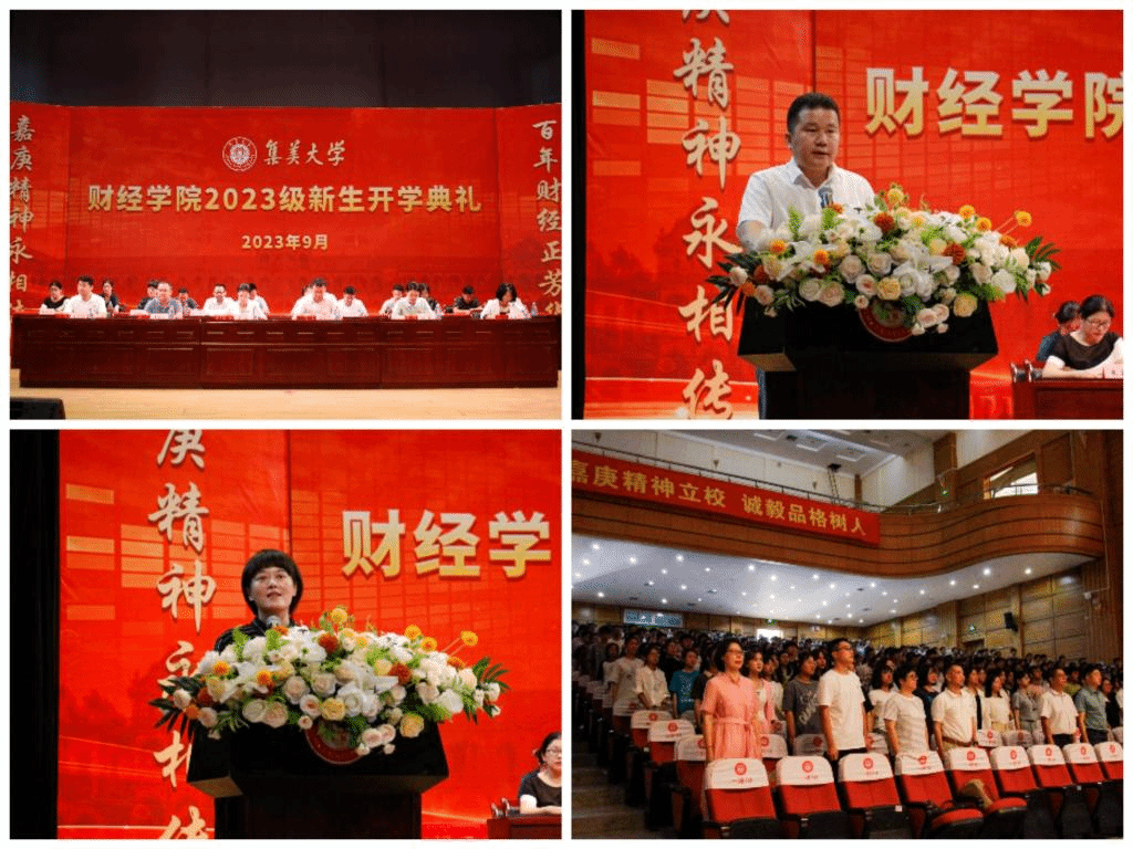 9月27日下午,财经学院于古龙大礼堂举行2023级新生开学典礼。学院领导、各科室负责人、各系主任、新生班主任、全体辅导员以及2023级全体新生参加,典礼由财经学院党委副书记黄建宇主持。