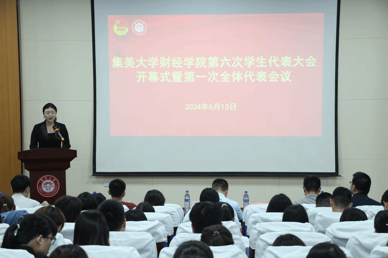 6月14日,财经学院于财媒体三楼多功能厅召开第六次学生代表大会。院党委副书记雷会彬,院团委书记方洋,院团委副书记、经济系副教授林涛,各系辅导员,以及全体学生代表参加本次会议。
