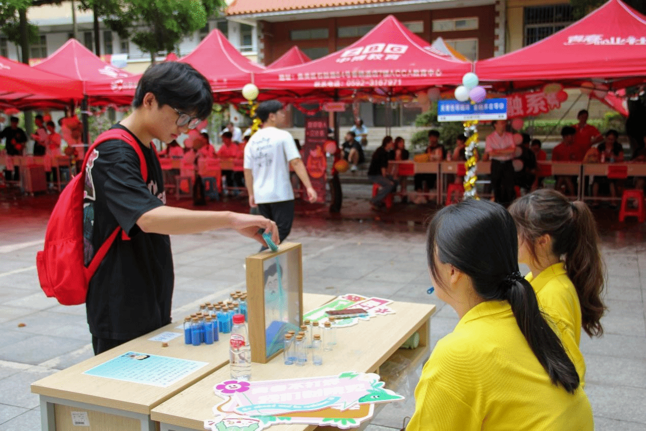 诚毅二字中心藏,嘉庚精神代代传。学院于报到点设立陈嘉庚沙画打卡点,邀请新生们将代表嘉庚精神——“忠公、诚毅、勤俭、创新”的四色流沙倒入相框,共绘陈嘉庚画像,了解嘉庚先生的故事,以此激励新生传承嘉庚精神,勇担强国使命。