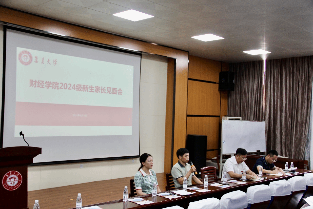 当天下午,财经学院于财媒体三楼多功能厅召开新生家长见面会,院党委书记吴星旭、院长杨得前、副院长陈蕾及各系主任、新生辅导员参与,院党委副书记雷会彬主持会议。杨得前向家长们简要介绍学院的历史沿革、办学理念、师资力量、学科建设等,帮助家长全面了解学院的整体情况。陈蕾详细介绍了金融国际精英班的课程设置、管理制度、课程优势、申请流程等。院领导们耐心解答家长疑问,并建立家校合作与沟通机制,为学生未来的学习和成长共同“保驾护航”。