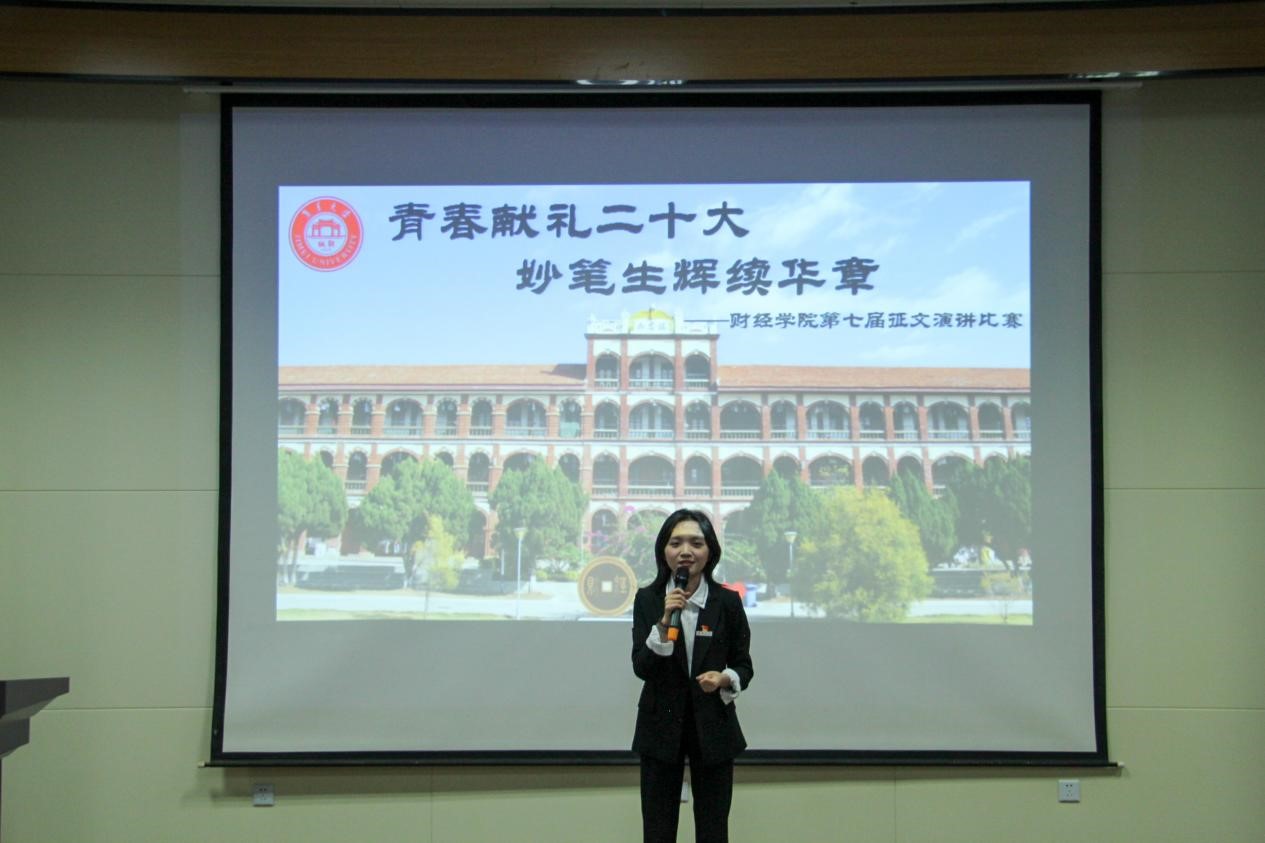 比赛过程中,选手们以满腔的热情和真挚的情感倾情诉说着生在红旗下、长在春风里的爱党爱国之情,表明作为新时代青年学生要以高度的思想自觉、政治自觉始终与时代同向而行,学习二十大,奋进新征程。选手们的演讲字字铿锵,慷慨激昂,用简洁的语言与真诚的情感感染着每一位观众,现场掌声雷动。经过激烈角逐,黄珊瑜凭借优异的表现摘得桂冠,吴怡颖、张佳维斩获二等奖,石智青、朱琳琳、黄薇玮荣获三等奖,沈于烁、林慧娟、王溪雨、熊思敏获得优秀奖。