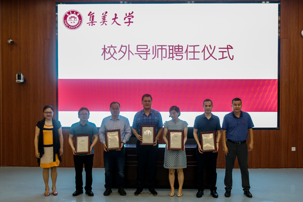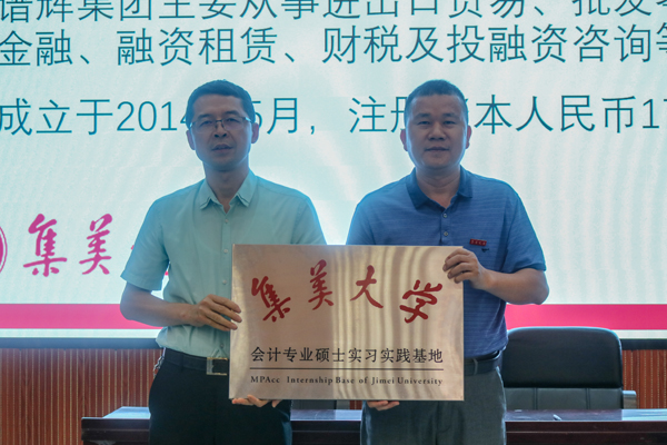 会上黄阳平院长代表学院与漳州投资集团有限公司、叼到家生态农业有限公司、致同会计师事务所福州分所、厦门谱辉集团有限公司等四家单位签署共建协议并授予实践基地牌,兰莉芸书记和黄阳平院长还共同为校外导师颁发了聘书。
