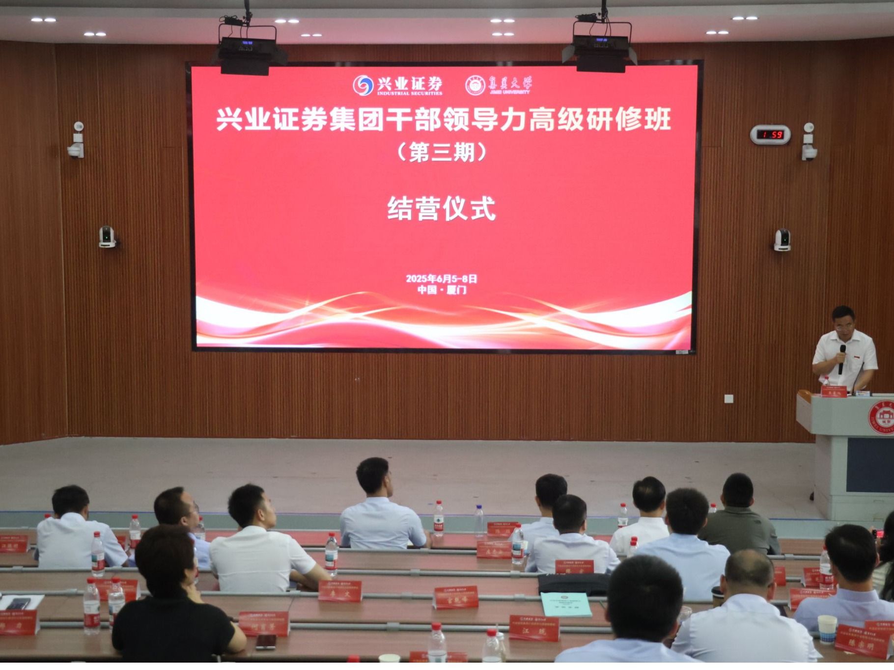2025年6月8日,由兴业证券集团主办、财经学院承办的“兴业证券集团干部领导力高级研修班(第三期)”成功举行结营仪式。来自兴业证券集团各县市的70余名负责人经过为期4天的集中学习,圆满完成各项培训任务。
