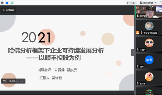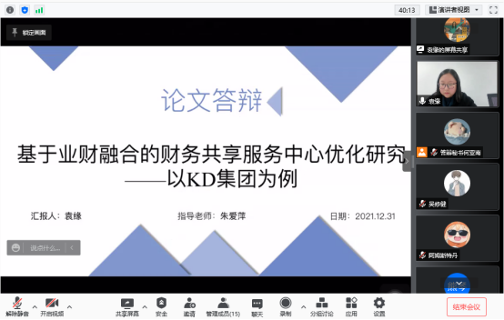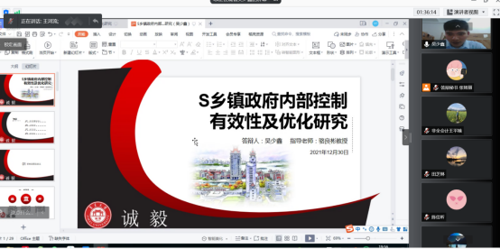 为了保障研究生毕业论文质量,2021年12月27日至12月31日,集美大学财经学院通过腾讯会议开展了2019级会计专硕非全日制研究生学位论文预答辩工作。此次参加答辩的18名研究生分为四组,由胡志勇教授、谢绵陛教授、骆良彬教授、章颖薇教授、卿松教授、陈旻教授、王河流副教授、黄静如副教授、朱爱萍副教授、邱月华副教授、汤岩副教授、林建秀副教授12人担任答辩组评审老师。