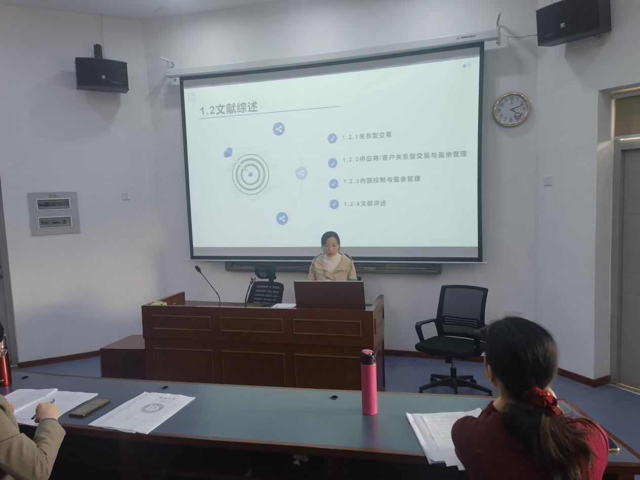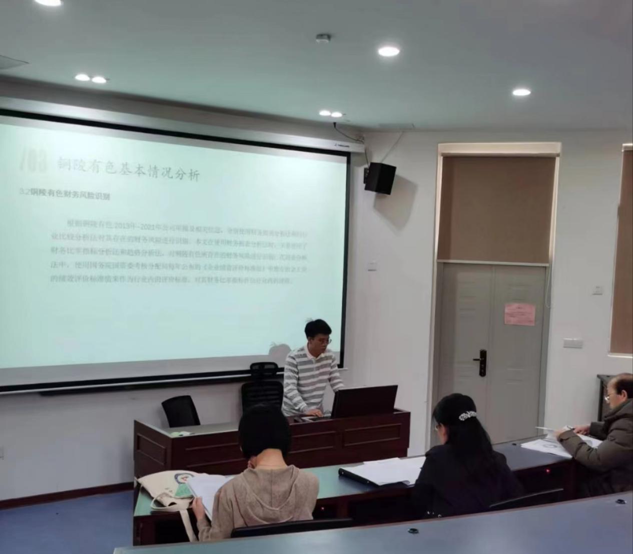 本次预答辩在财经学院文渊楼107、205和207三个教室举行。答辩过程中,每位答辩研究生通过精心制作的PPT展示,分别从研究背景、研究意义、研究思路、创新点等方面对自己的毕业论文主要内容进行阐述。接着,由答辩组评审老师严格把关,针对其论文内容及写作思路提出相应的看法与建议。最后,答辩研究生就论文中存在的疑难点同评审老师进行深入探讨,并回答评审老师根据论文提出的问题。答辩研究生在预答辩后还将征求指导老师意见,结合答辩过程中评审老师所提的建议,进一步完善毕业论文的写作。整个答辩过程组织严谨,流程规范,符合我校硕士学位毕业工作实施细则相关要求,收获了良好效果。答辩学生和评审老师们之间的思想碰撞和知识交流使得参会的学弟学妹同样受益匪浅。