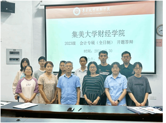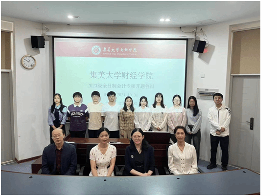 2024年10月底,集美大学财经学院顺利开展了会计学专业硕士研究生学位论文开题答辩工作。此次参加答辩的28名研究生分为三组,由谢绵陛、胡志勇、卿松、陈旻、章颖薇、邱月华、王河流、朱爱萍、林建秀、黄静如、汤岩等专业导师担任答辩组评审老师。